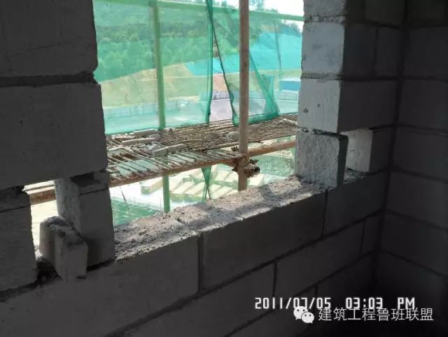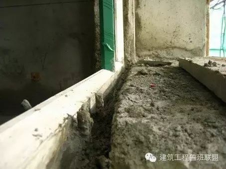3、窗台压顶采取后浇方式、浇筑不密实。