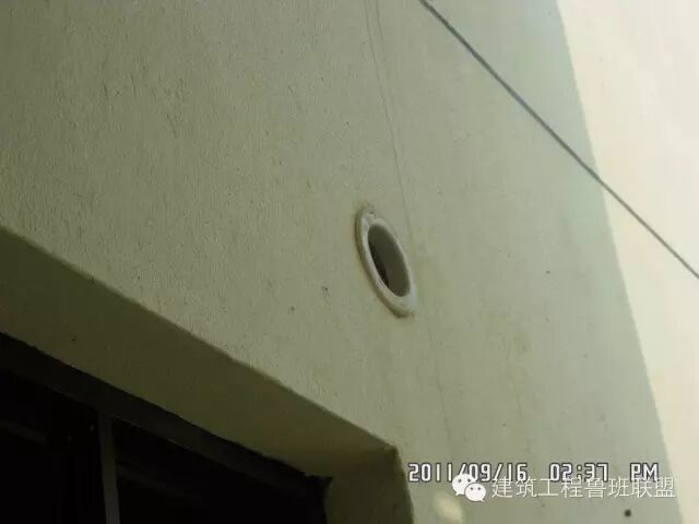 2、且PVC管外边缘与外墙抹灰层交接处渗漏
