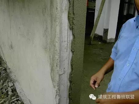 ①凿除线条上部200mm高至砌体基层,并凹进去20-30mm;