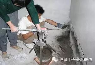 重新钻扎,找好流水坡度,并外扩管洞口,做防水涂膜