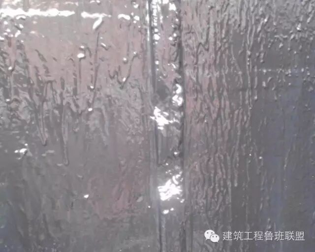 反思:涂料施工前应做好基底处理,确保平整度达到要求,涂刷施工时应确保涂刷均匀,第二道防水涂料施工必须在前一道固结以后进行。
