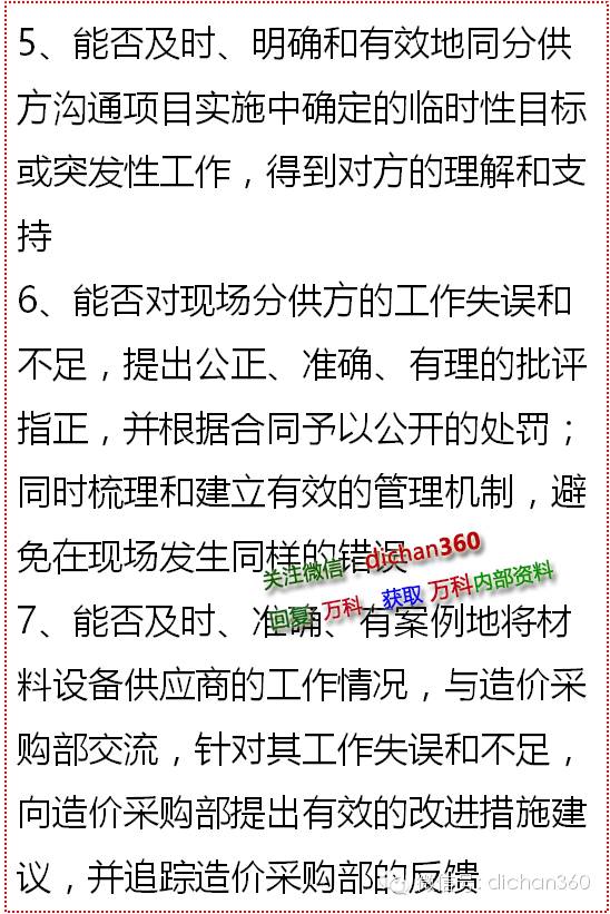 7、是否了解别专业施工中所需的技术条件和资源条件,从本岗位本专业的角度主动及时地给予支持和帮助8、能否在项目实施中发生有损项目形象和项目进度的不良倾向时,虽然与本专业工作无关,也敢于提出有效的批评和建设性意见