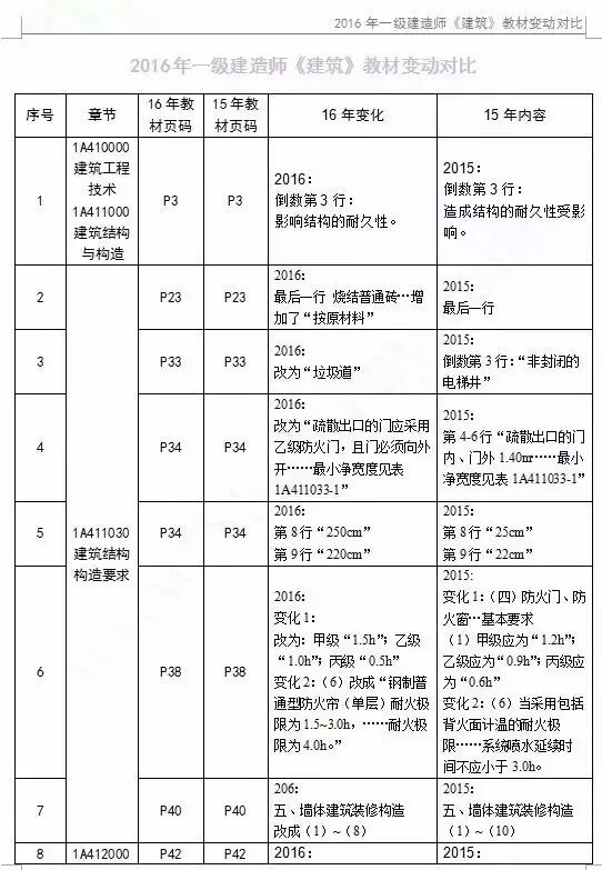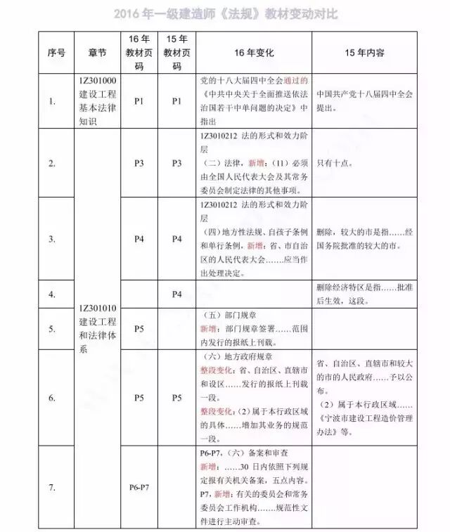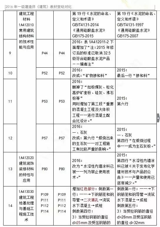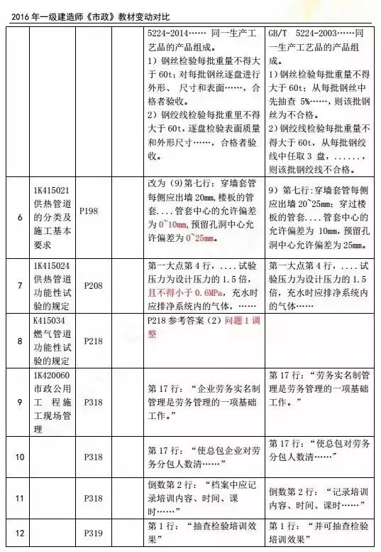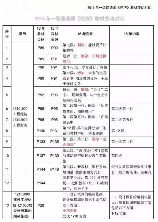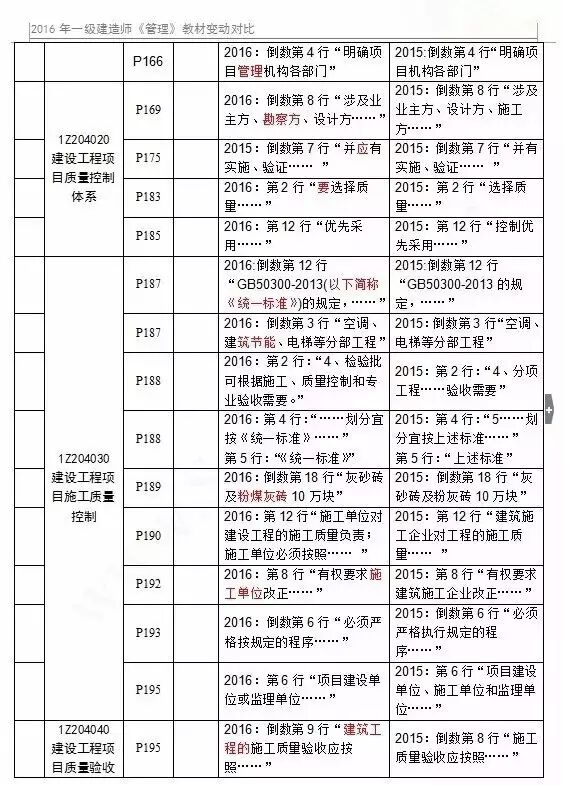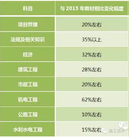 2016年一级建造师各科目新教材变化情况: