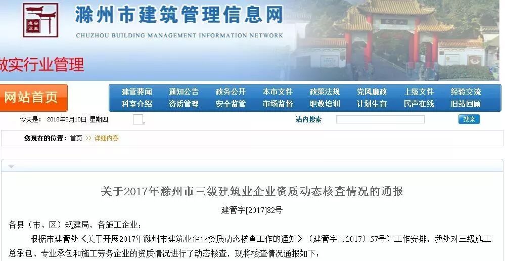 1、2018年1月,四川省住建厅公布对存在违法违规行为的1022家建筑业企业资质监督复查情况,复查合格企业518家,不合格企业504家;不合格企业中,110家被撤回企业资质,20家被清出当地建筑市场。