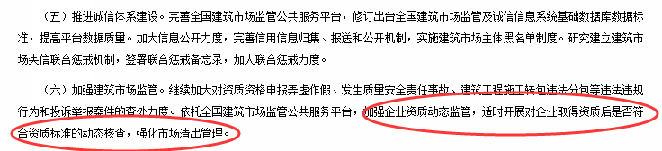 为了推进“放管服”政策,资质申报的审批门槛越降越低,相关部门为了加强对建筑企业的事中事后监管力度,加强了资质动态核查的力度,将资质动态核查常态化。