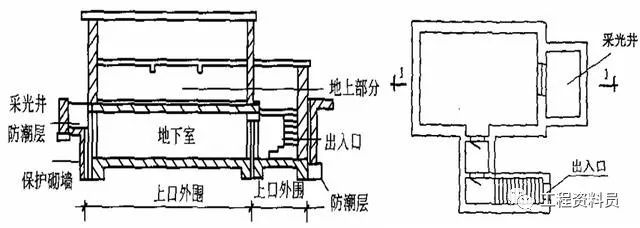 4.地下室、半地下室、地下车间、仓库、商店、指挥部等及附属建筑物有出入口的建筑物,建筑面积按其上口外墙(不包括采光井、防潮层及其保护墙)外围水平面积计算。人防通道端头出口部分为楼梯踏步时,按楼梯上口外墙外围水平面积计算。