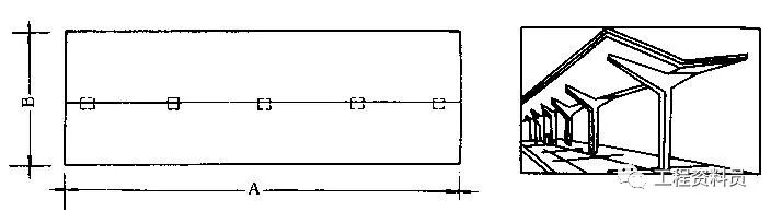 单排柱的独立车绷、货棚、站台等,按顶盖的水平投影面积的一半计算建筑面积。建筑面积;(A×B)/2。