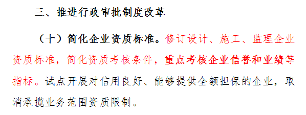 1、在2016年10月,住建部发布《关于简化建筑业企业资质标准部分指标的通知》,通知明确,除各类别最低等级资质外,取消关于注册建造师等的指标考核。取消注册建造师等人员的指标考核后,工程业绩就成为资质标准三项硬性指标中(企业资产、技术负责人、工程业绩)份量较重的一项。