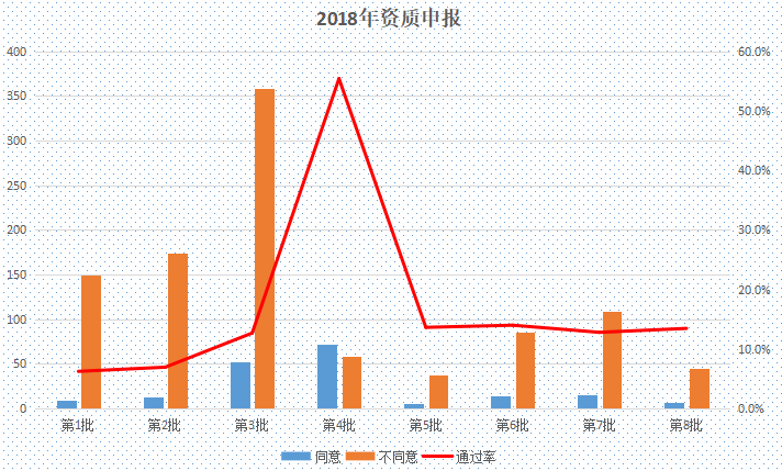 截至5月25日,住建部已公布8个批次的《建筑业企业资质专家审查意见》。综合下来,共计190项资质申请通过审查,1018项不通过,资质申请通过率仅有15.7%。