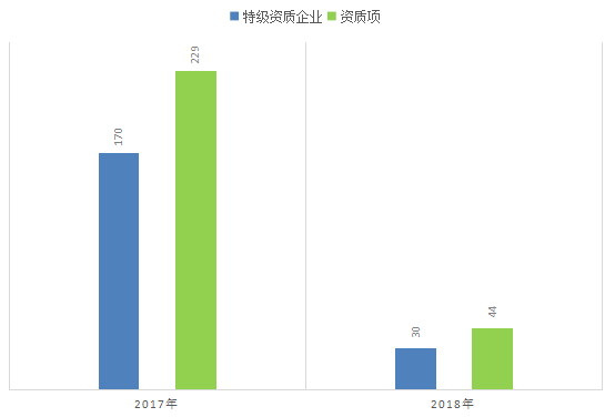 近半年过去,无论是新增特级资质企业数量还是新增特级资质项数量,2018年都不及2017年的五分之一。