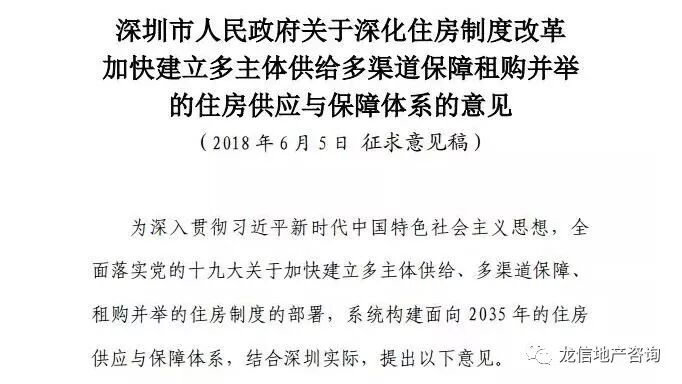 原因是深圳市住建局正式发布了一份文件,《关于深化住房制度改革加快建立多主体供给多渠道保障租购并举的住房供应与保障体系的意见(征求意见稿)》。