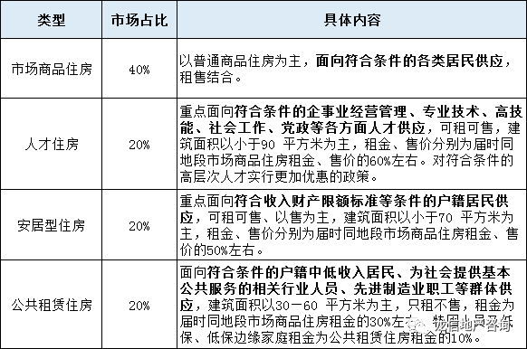 三是安居型商品房,占住房供应总量的 20%左右,重点面向符合收入财产限额标准等条件的户籍居民供应;