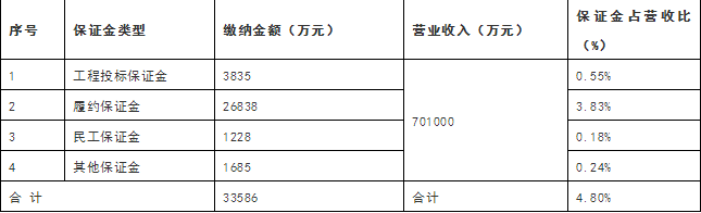 某施工企业在市场经营过程中,缴纳各类保证金情况如下表: