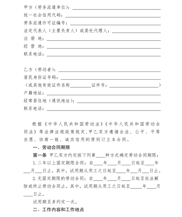 编制了《劳动合同(通用)》和《劳动合同(劳务派遣)》示范文本