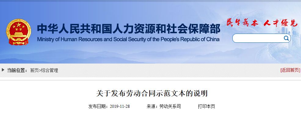 11月28日,人社部官网发布《关于发布劳动合同示范文本的说明》,根据中华人民共和国劳动合同法》等法律法规和政策,