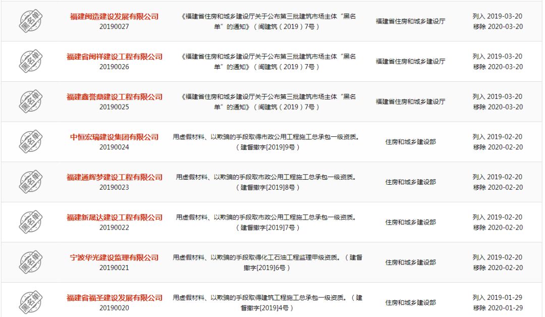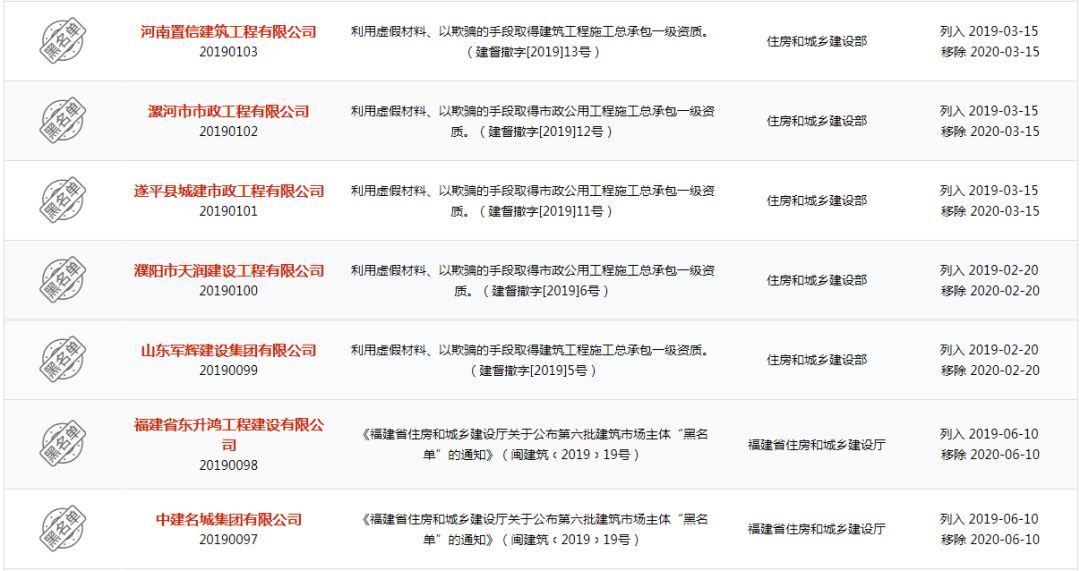 建立建筑市场主体黑名单制度。2017年,住建部发布了信用管理暂定办法,有史以来第一次明确了建筑市场主体的黑名单制度。同时要求各级住房和城市建设主管部门,重点关注建筑市场主体黑名单中列出的建筑市场主体,限制市场准入、资质资格申请、招投标。