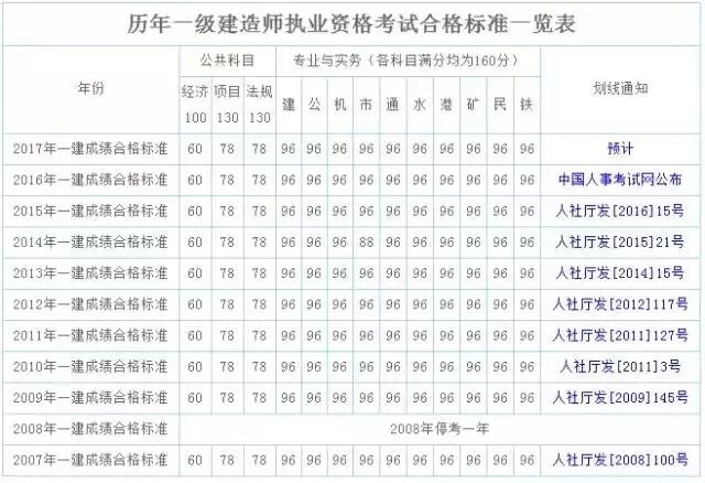 一级建造师考试合格标准