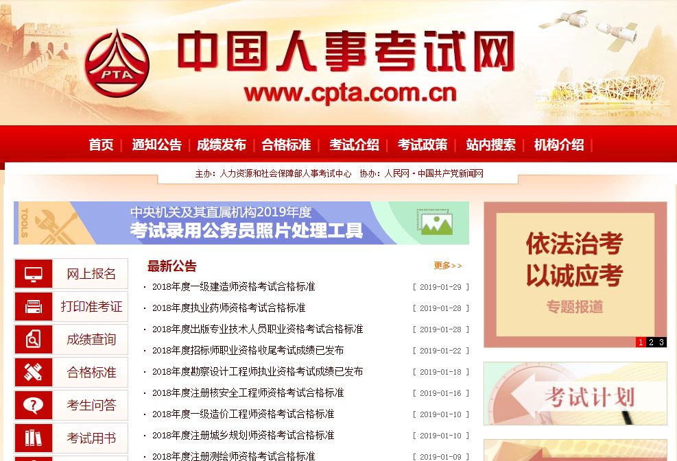 1、登陆中国人事考试网,网址:http://www.cpta.com.cn/;