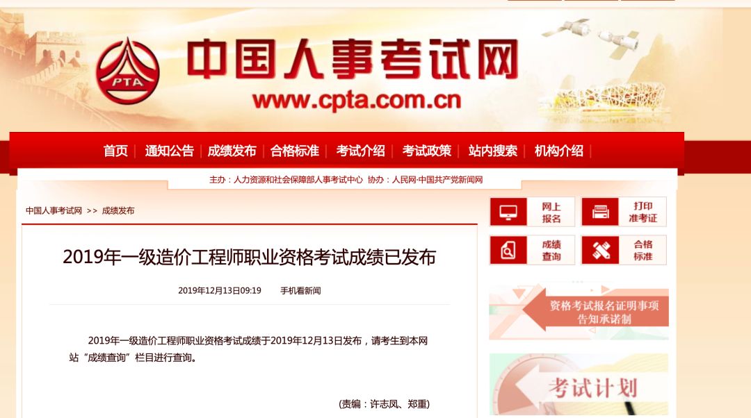 12月13日,2019年一级造价工程师考试成绩正式公布!
