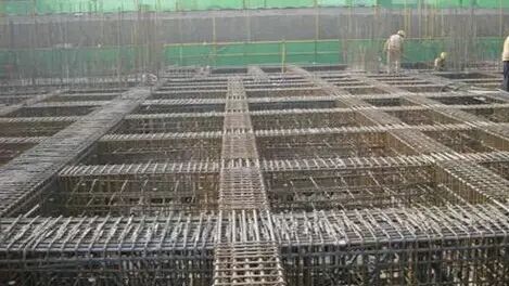 基础钢筋,次梁上部主筋置于主梁上部主筋之下,板筋上层筋置于基础梁上部主筋之下。