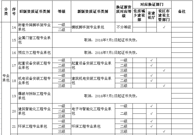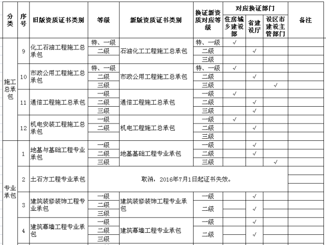 【对号入座】企业资质证书与换发专业以及换证部门对照表,你必须看!