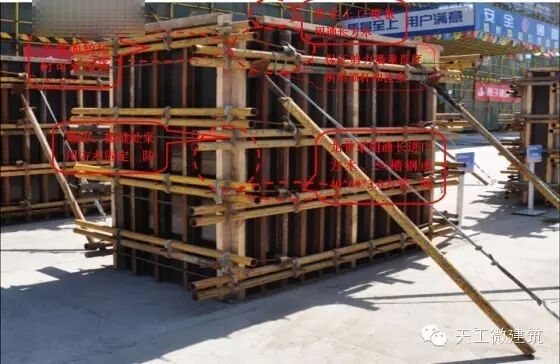 2.2 所有剪力墙应设置保证墙体垂直度的斜撑,防止在浇混凝土过程中产生墙体偏扭。