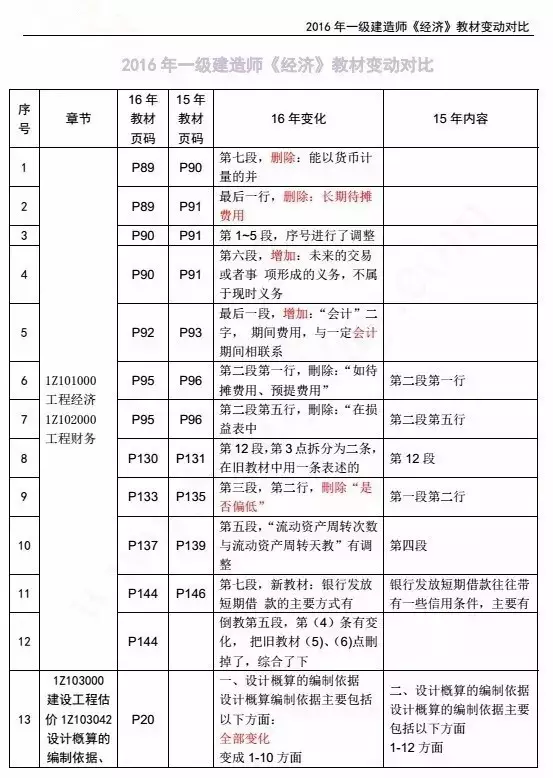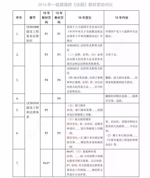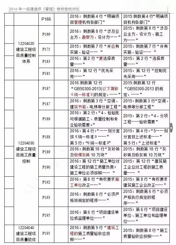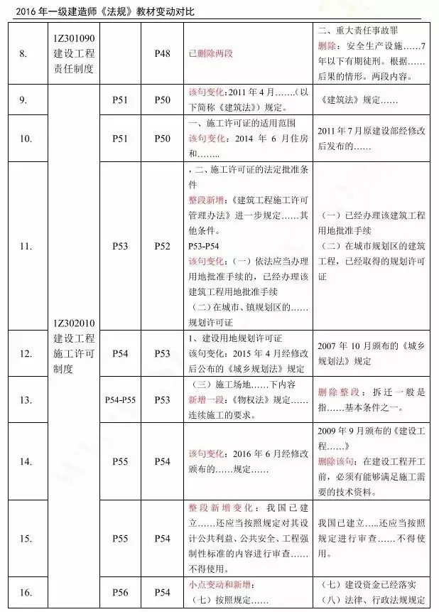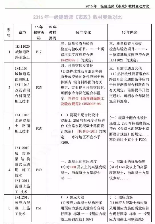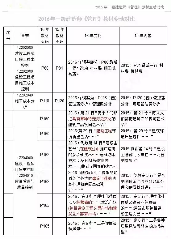2016年一级建造师各科目新教材变化情况: