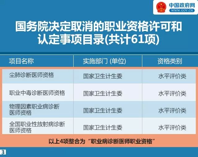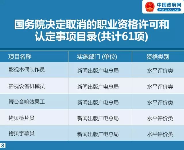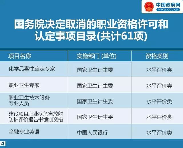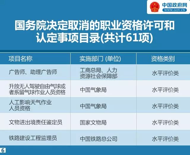 下一步要在继续取消职业资格的同时,公布实施国家职业资格目录清单,清单外一律不得许可和认定职业资格,清单内除准入类职业资格外一律不得与就业创业挂钩。