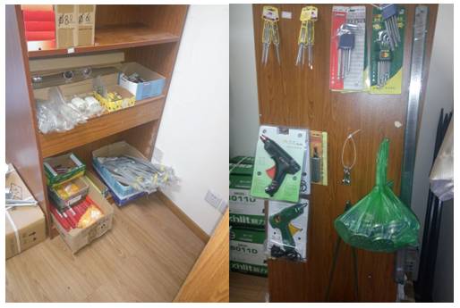 物品摆放整齐,清单明细清楚,即使是一个新手,也可以马上找到所需要的物品,清单每列物品前面已经写清楚所在位置,去了一找就看到拿到,节省时间,查找快捷。