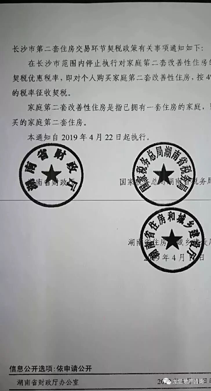 突发新政!4月22日起,湖南省在长沙市范围内停止执行对家庭第二套改善性住房的契税优惠政策,即对个人购买家庭第二套改善性住房,按4%的税率征收契税。此前,长沙市对个人购买第二套改善性住房90平米及以下减按1%,90平米以上减按2%征收契税。