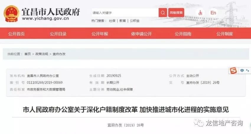 9月25日,宜昌市人民政府网站发布消息:全面取消城镇落户限制。