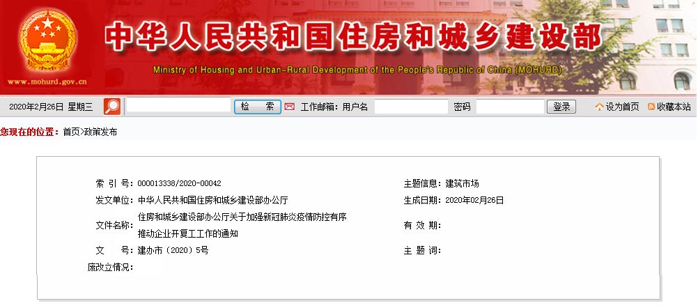 住房和城乡建设部办公厅关于加强新冠肺炎疫情防控有序推动企业开复工工作的通知