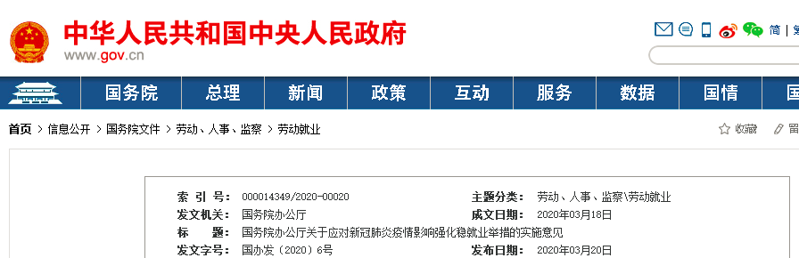 刚刚,国务院办公厅印发《关于应对新冠肺炎疫情影响强化稳就业举措的实施意见》。